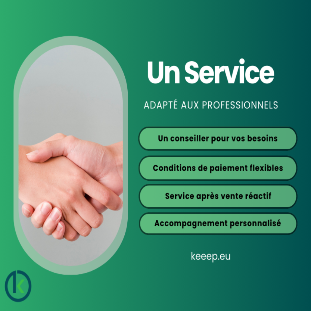 Nous mettons en place des conditions de paiement flexibles et adaptées aux entreprises, ainsi qu’un service après-vente réactif pour toujours assurer la continuité de votre activité.